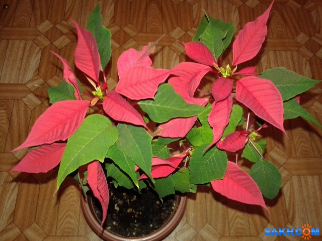 Пуансетия (рождественская звезда) зацветает